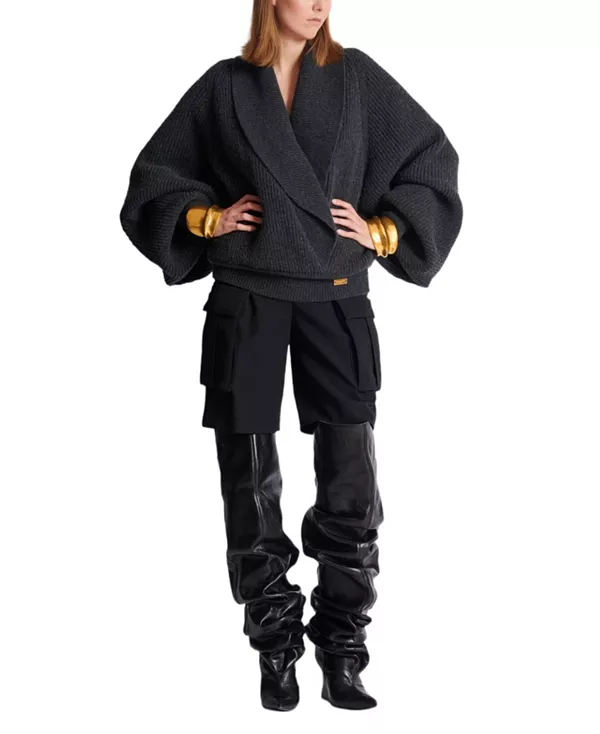 Объемный вязаный джемпер Balmain, серый 218 466₽