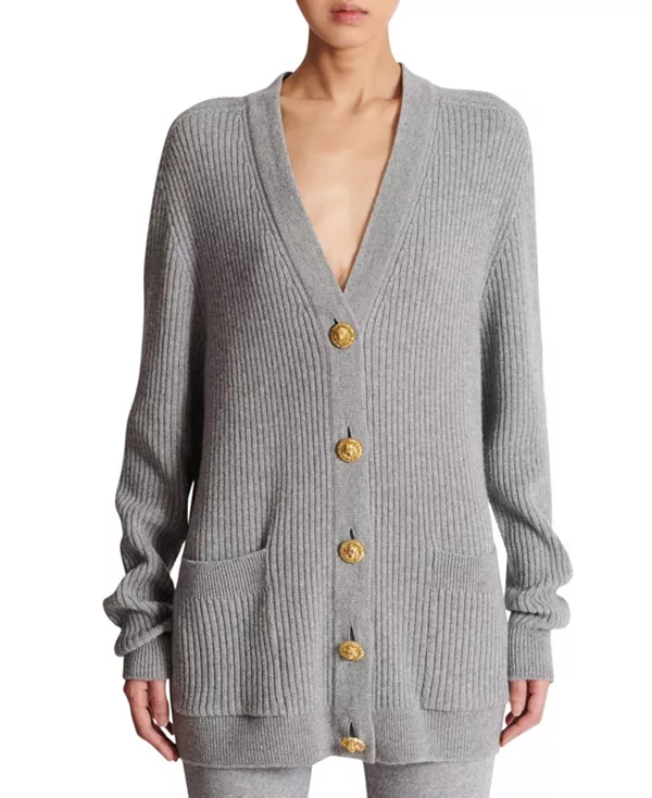 Кашемировый кардиган на пуговицах Balmain, серый