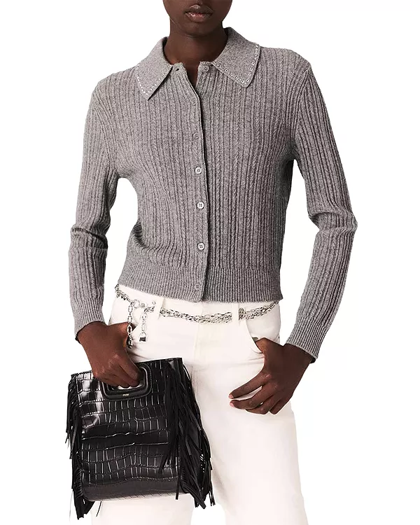 Украшенный шерстяной кардиган Maje, серый 26 105₽