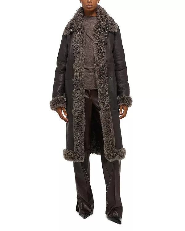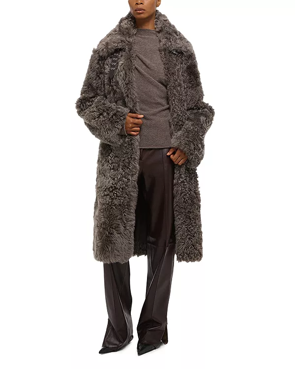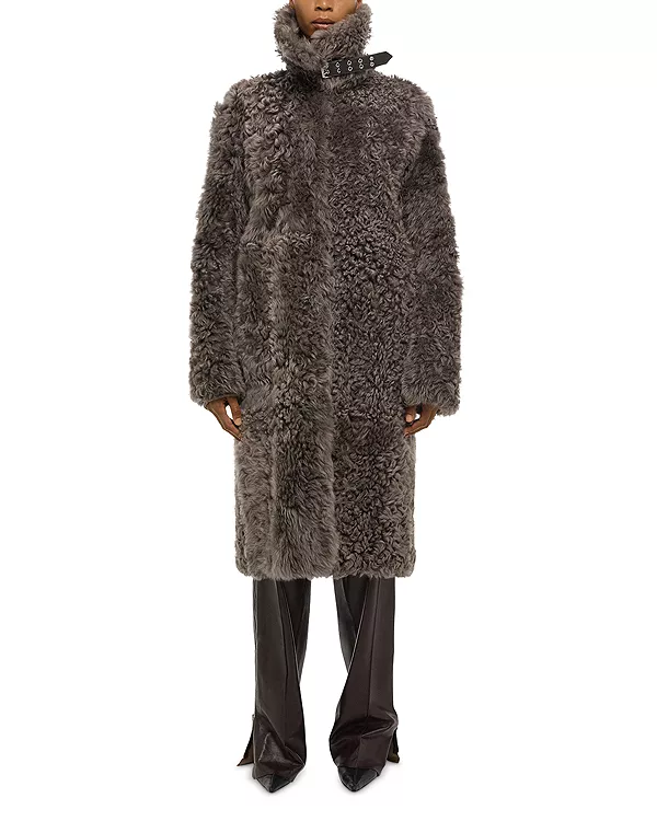 Потрясающее двустороннее пальто от Хельмута Ланга из натуральной кудрявой овчины с пряжкой на воротнике.