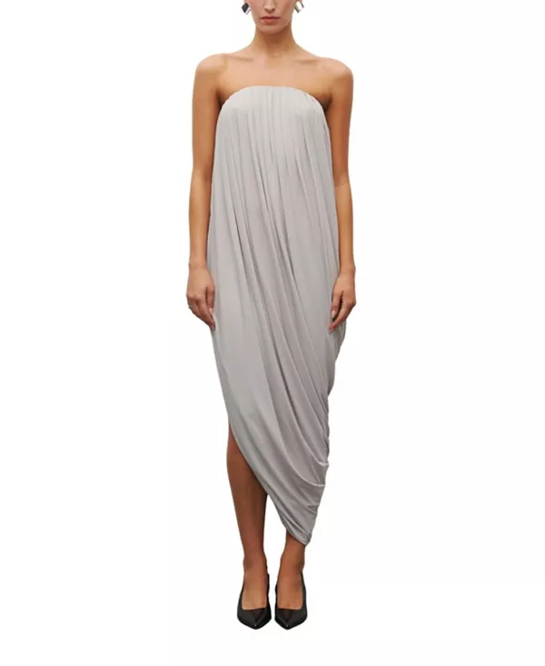 Бренд: Heiress Beverly Hills Цвет: серый Это платье без бретелей, сшитое из фирменного эластичного трикотажа Heiress, ниспадает струящимися складками, которые движутся вместе с телом. Сборки одновременно моделируют фигуру и смягчают силуэт, создавая эффект стройности. Платье длиной до щиколотки сочетает в себе структуру и легкость, создавая сдержанный и незабываемый образ.