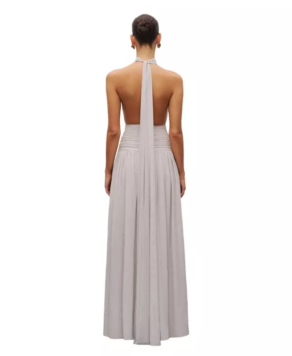 Бренд: Heiress Beverly Hills Цвет: серый Это платье, сшитое из фирменной двухслойной эластичной сетки Heiress, моделирует фигуру и визуально удлиняет ее благодаря плавным линиям. Воротник-халтер и открытая спина создают изысканный баланс между структурой и чувственностью, а высокий разрез добавляет движения и свободы. Полностью на подкладке для поддержки и сохранения формы, оно является современным заявлением, воплощением скульптурной элегантности.