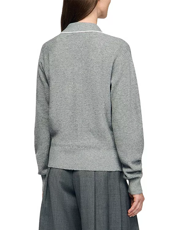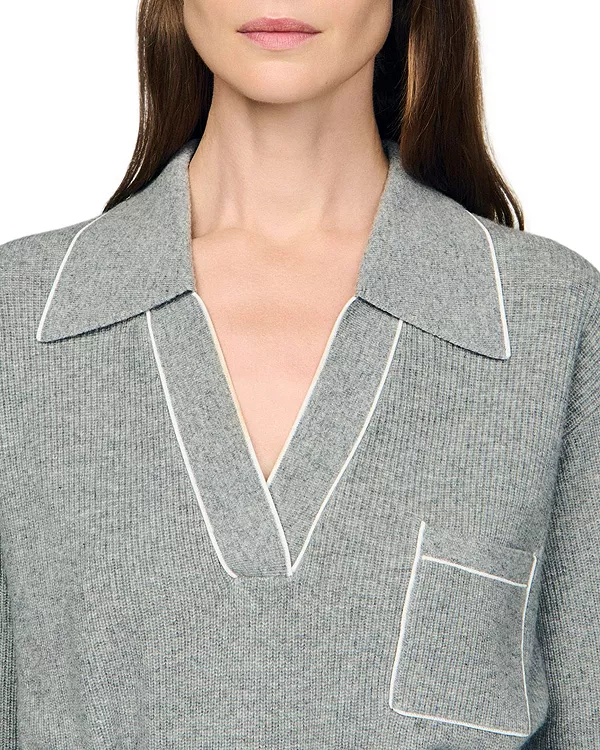 Особенности: Открытый V-образный воротник поло с контрастной окантовкой Длинные рукава Модель пуловера Нагрудный накладной карман На подкладке Импортный товар