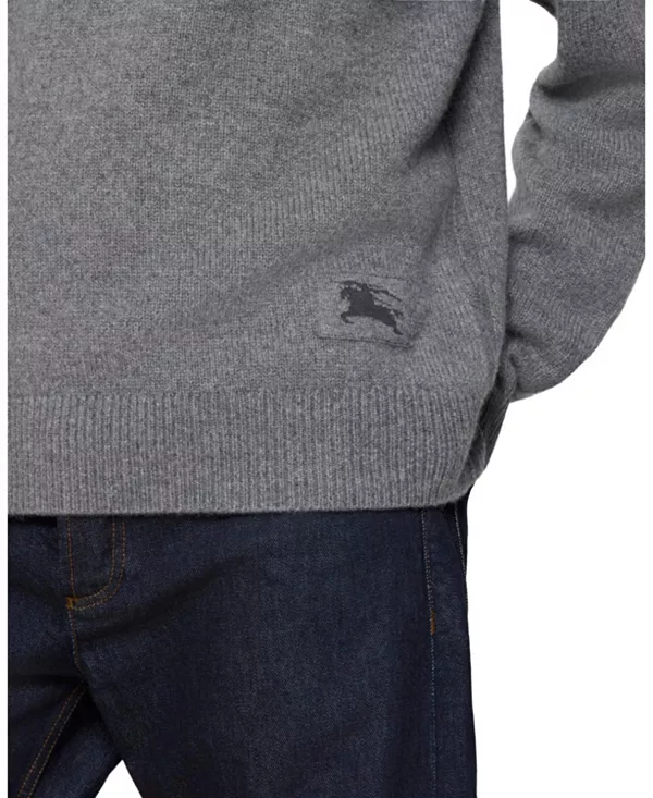 Свитер из ультрамягкого кашемира с добавлением эластичных волокон, стандартного кроя. Модель с круглым вырезом украшена накладками на локтях в тон, цепочной строчкой на плечах и контрастным рисунком «Рыцарь-всадник».