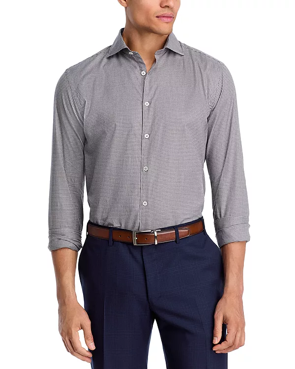 Спортивная рубашка в мелкую клетку Canali, серый 40 955₽