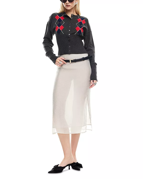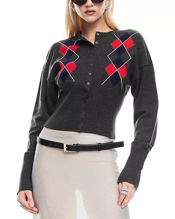 Аргайл на груди, ребристая трикотажная отделка пояса и манжет
