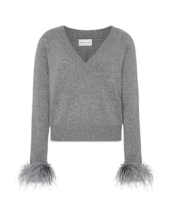 Свитер с перьевыми манжетами Milly, серый
