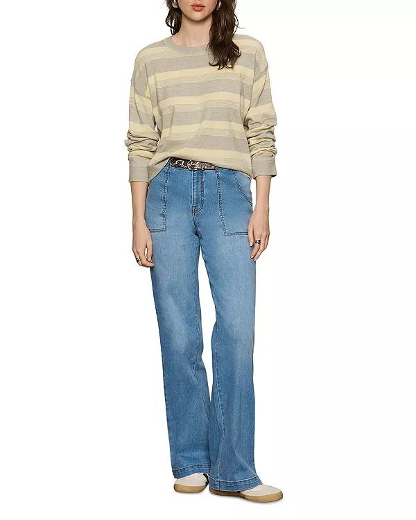 Приспущенные плечи, длинные рукава, ребристые манжеты