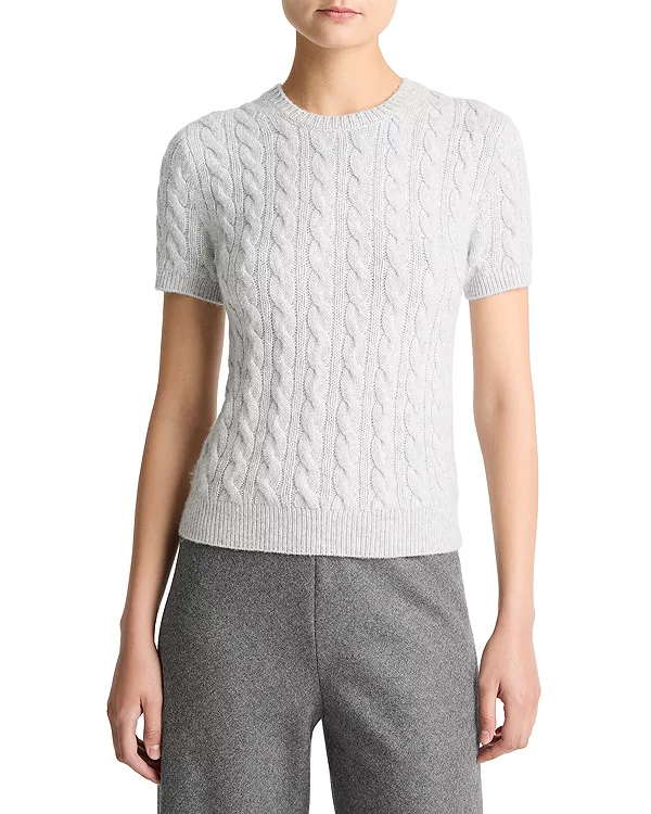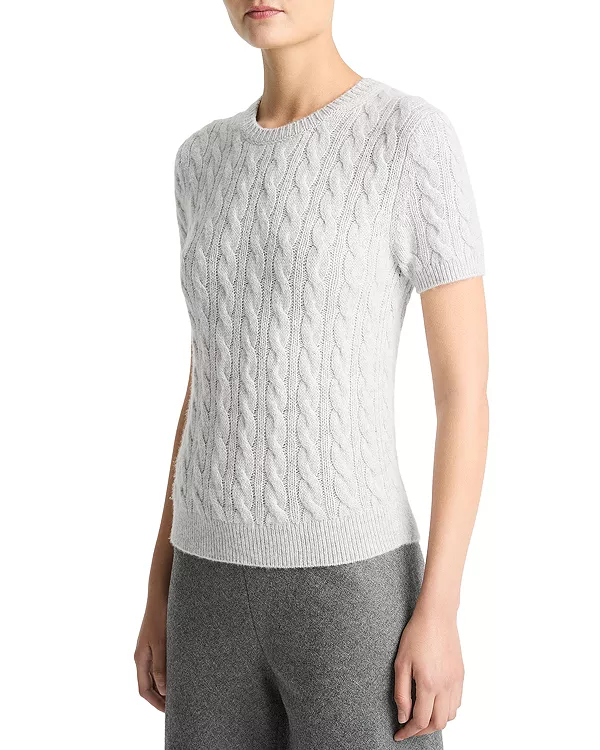 Свитер с короткими рукавами и косами Vince, серый 36 998₽