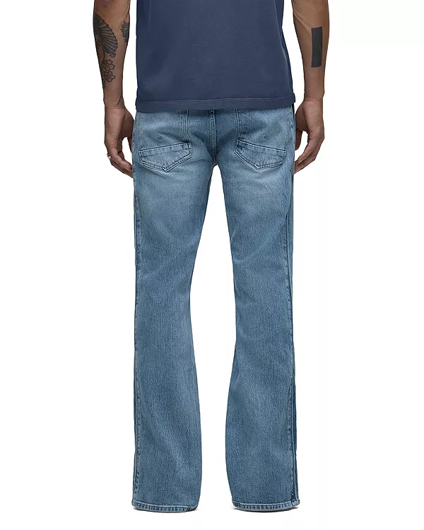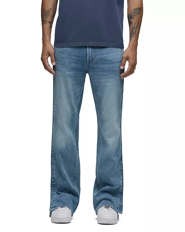 Фирменные джинсы Hudson отличаются свободным кроем со средней посадкой, расклешенным низом и деталями в стиле спортивных брюк. Изготовленные из высококачественного эластичного денима, эти джинсы светлого оттенка имеют потертости и грубую текстуру, а также классическую конструкцию с пятью карманами.