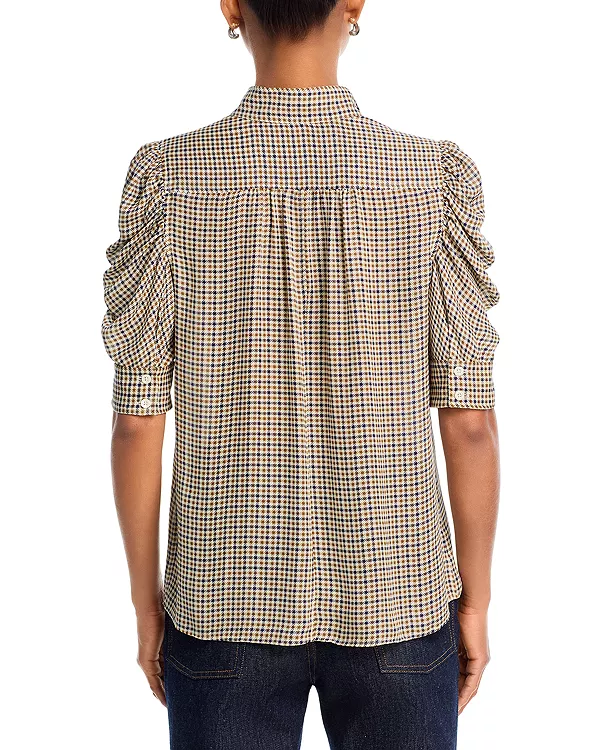 Шелковый топ Gillian с узором «гусиная лапка» Frame, мультиколор
