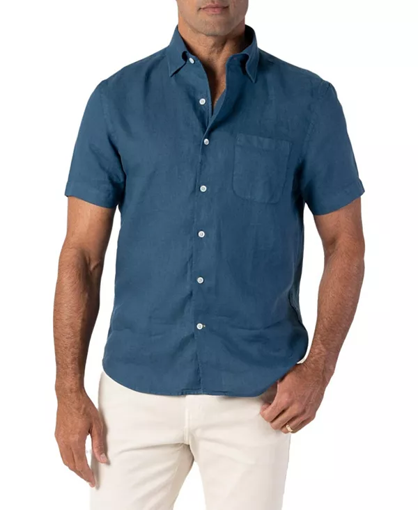 Льняная рубашка с коротким рукавом Morgan Robert Talbott, синий