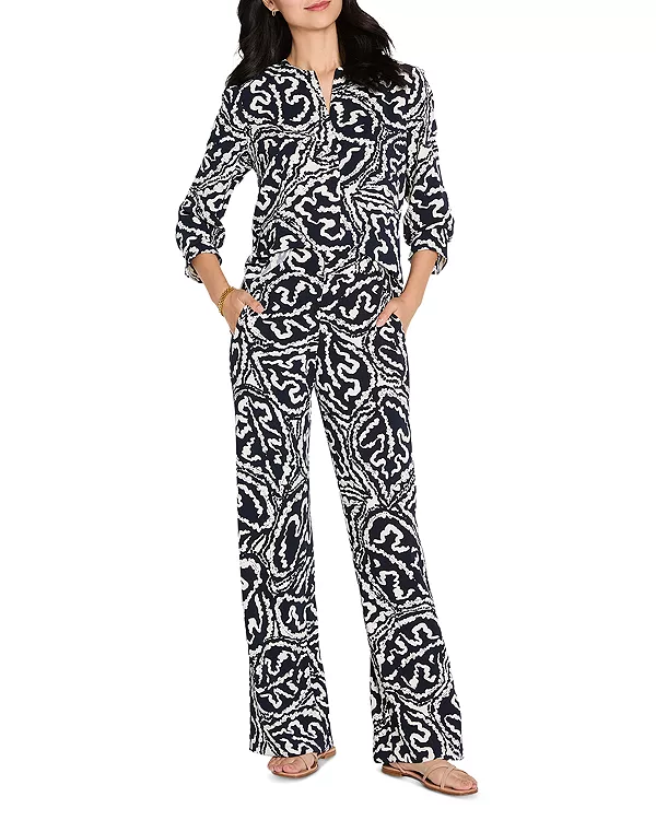 Топ из двойного крепа с рисунком листьев индиго Nic+Zoe, мультиколор 21 432₽