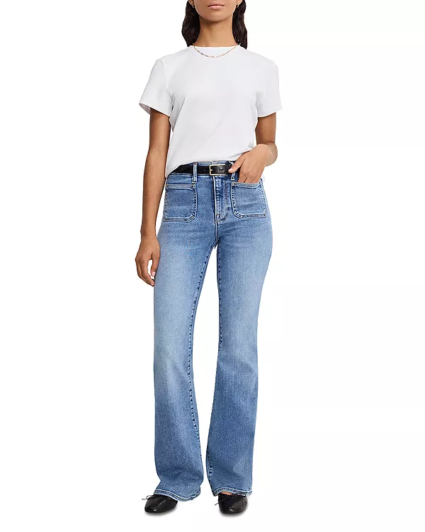 Джинсы-Клеш цвета индиго 1149 Good American, синий 19 386₽