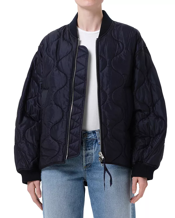 ОСОБЕННОСТИ Стеганая куртка AGOLDE Isla имеет свободный силуэт, застежку-молнию спереди и небольшой объем в рукавах. Изготовленная из ультрагладкого, шелковистого нейлона насыщенного темно-шоколадного цвета, она придает изысканность этому повседневному элементу гардероба для холодной погоды.