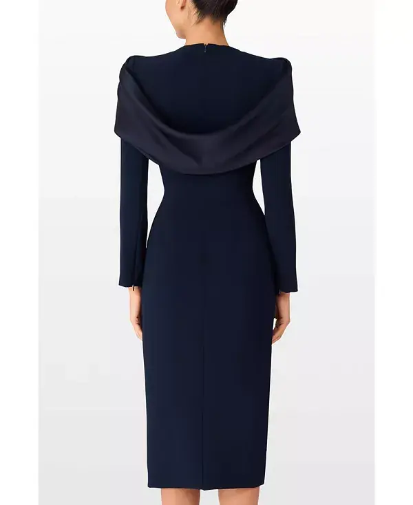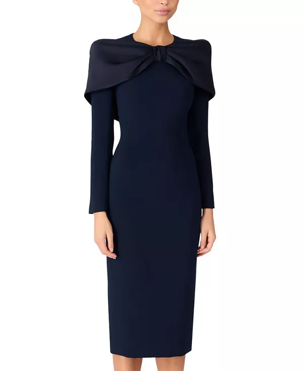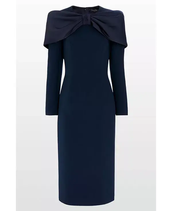 Бренд: Jenny Packham Цвет: синий Изысканное коктейльное платье с элегантным облегающим силуэтом и большим бантом на вырезе, придающим ему утонченную элегантность. Четкие линии и строгий крой создают безупречный образ. Идеально подходит для элегантных дневных мероприятий и коктейльных вечеринок, оно легко сочетает в себе вневременной стиль и современный шарм.