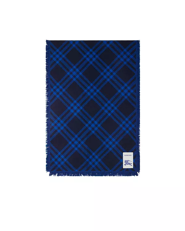 Широкий клетчатый шерстяно-шелковый шарф Burberry, синий