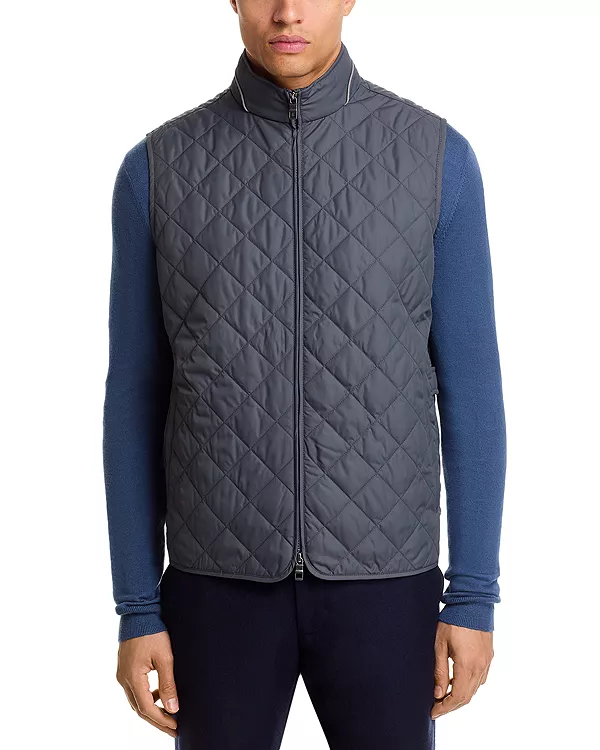 Особенности: Воротник-стойка Застежка на молнию Без рукавов Два боковых кармана на молнии Стеганый узор в виде ромбов по всей поверхности Ветро- и водоотталкивающий Импортный товар