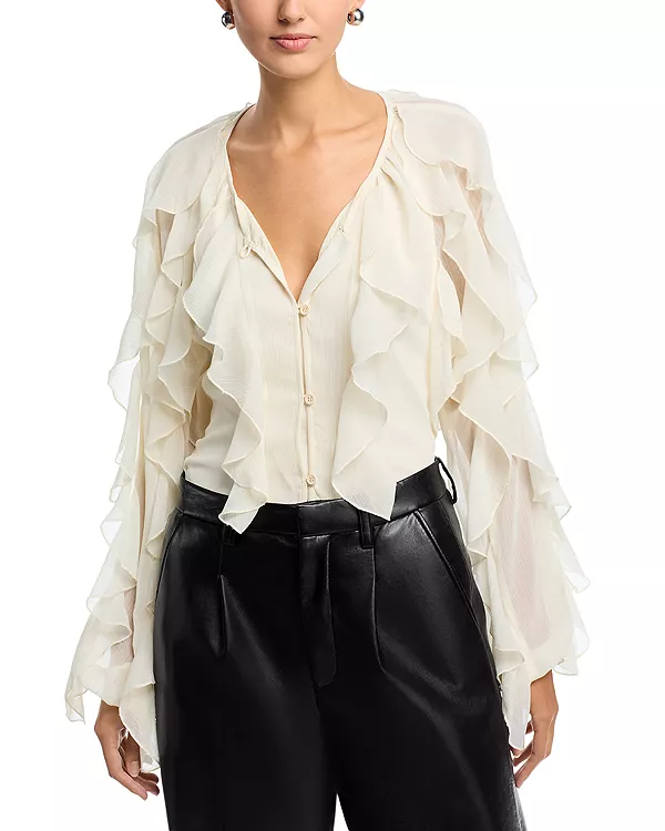 Каскадные оборки от шеи и плеч до низа и манжет