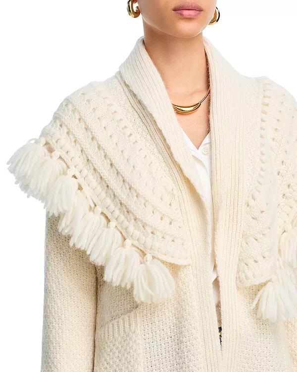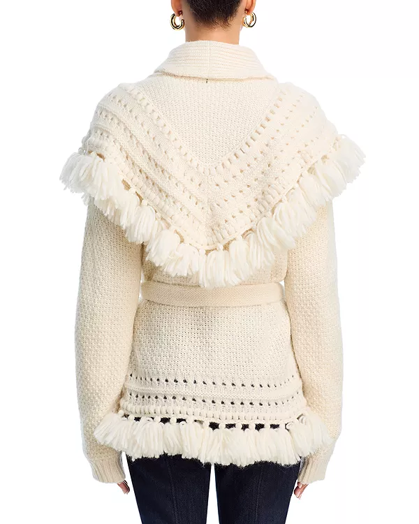 Кардиган Asmi отличается уникальным двухслойным трикотажным дизайном. Эффектный пояс подчеркивает силуэт, обеспечивая элегантную и регулируемую посадку. Такие же кисточки по низу завершают образ, сочетая текстуру и стиль, идеально подходящие для того, чтобы дополнить любой наряд.