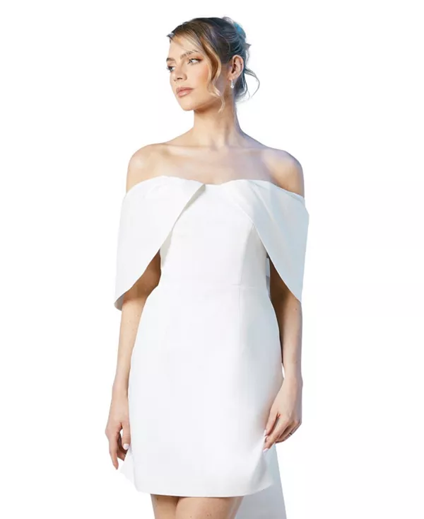 Эффектное мини-свадебное платье с открытыми плечами. Coast, белый