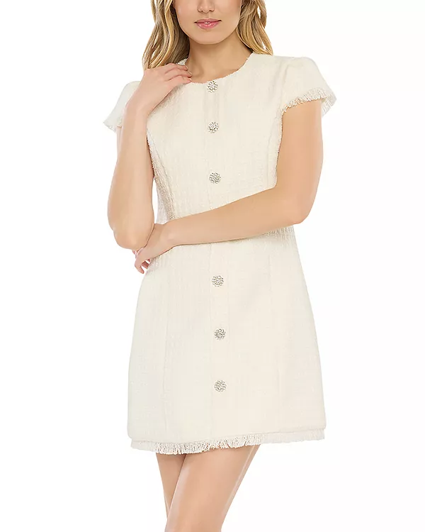 Мини-Платье Riello из твида с бахромой Likely, белый 32 308₽