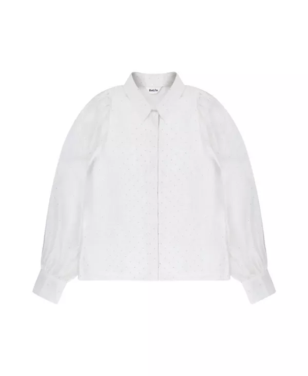 Мини-Рубашка на пуговицах, украшенная стразами Ro&Zo, белый
