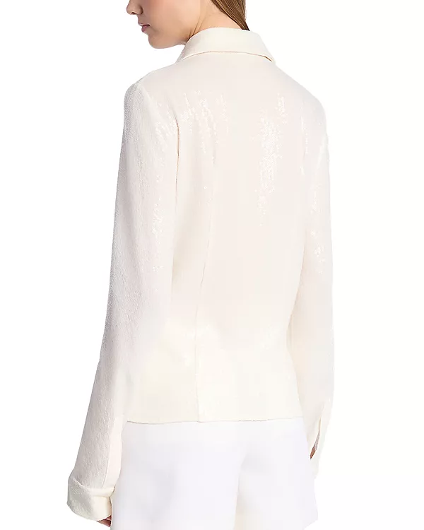 Шелковая рубашка Hansen с линейным рисунком из пайеток Michael Kors Collection, белый 183 762₽