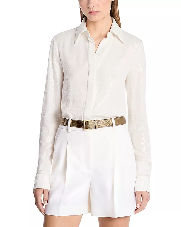 Шелковая рубашка Hansen с линейным рисунком из пайеток Michael Kors Collection, белый