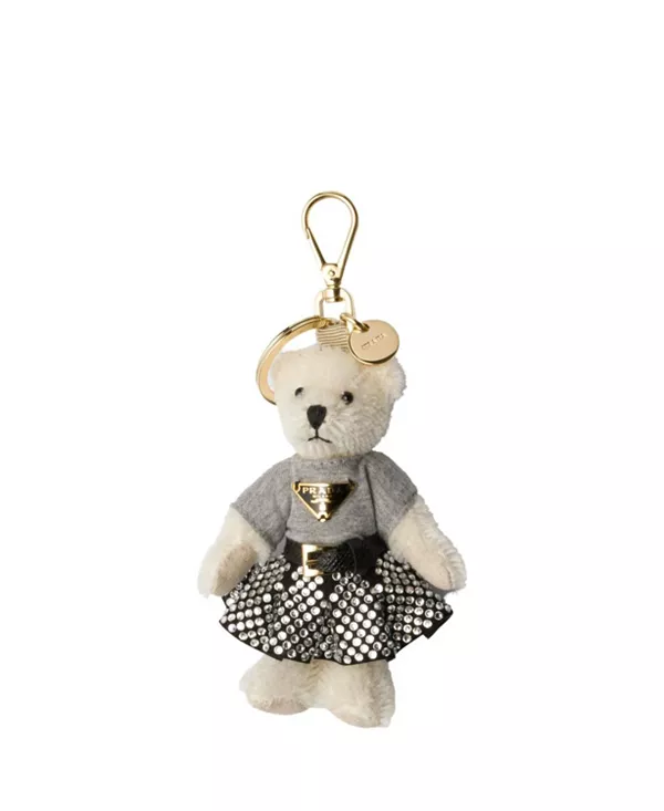 Брелок для плюшевой сумки с металлическим кольцом Prada, белый