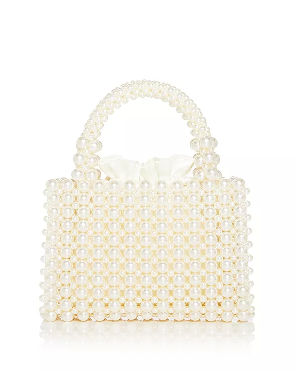 Эксклюзивная сумка с ручкой, украшенная бисером. Aqua, белый 13 309₽