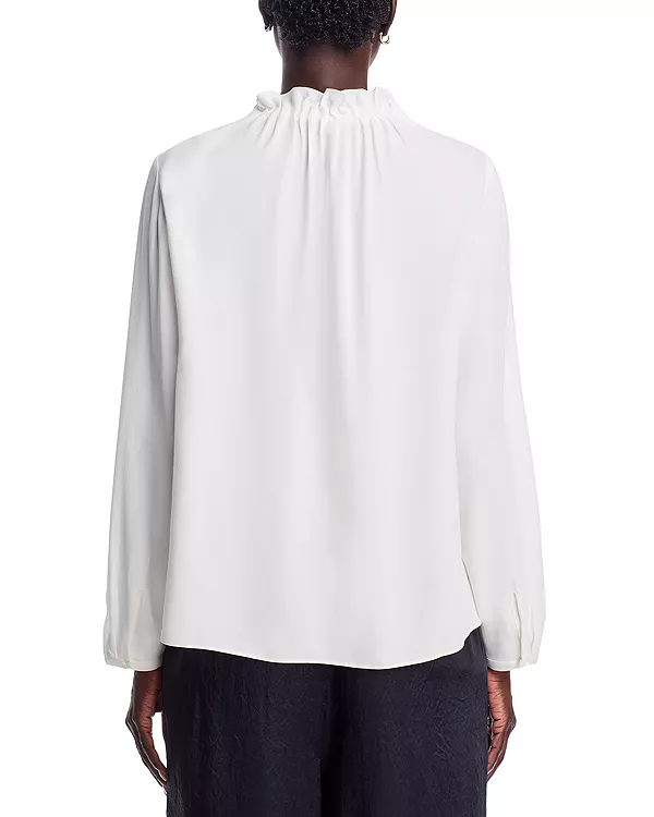Шелковый топ со сборками на шее Eileen Fisher, белый 22 028₽