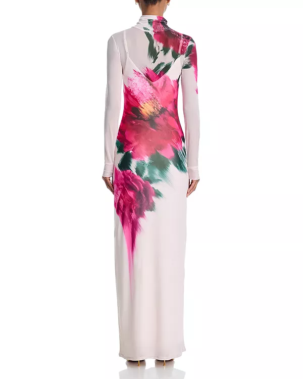 Цветочный принт, прозрачная сетчатая ткань