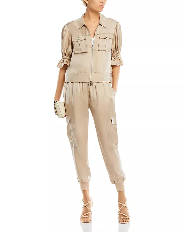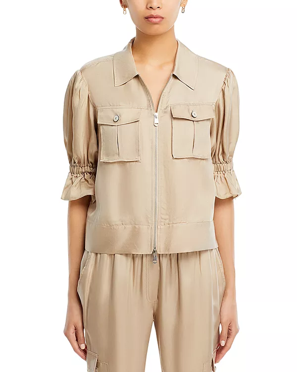 Особенности: Классический воротник Рукава до локтя, эластичные манжеты с оборками Застежка-молния спереди Два нагрудных кармана с клапанами и застежкой на пуговицы Обтачка по низу Импортный товар