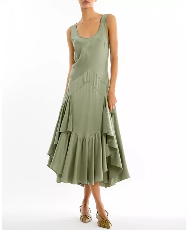 Платье Evelyn, изготовленное из 100% органического шелка, обработанного песком, отличается струящейся драпировкой и невероятно мягкой текстурой. Благодаря силуэту без рукавов и ниспадающим панелям, это макси-платье красиво движется при каждом шаге, излучая вневременную грацию.