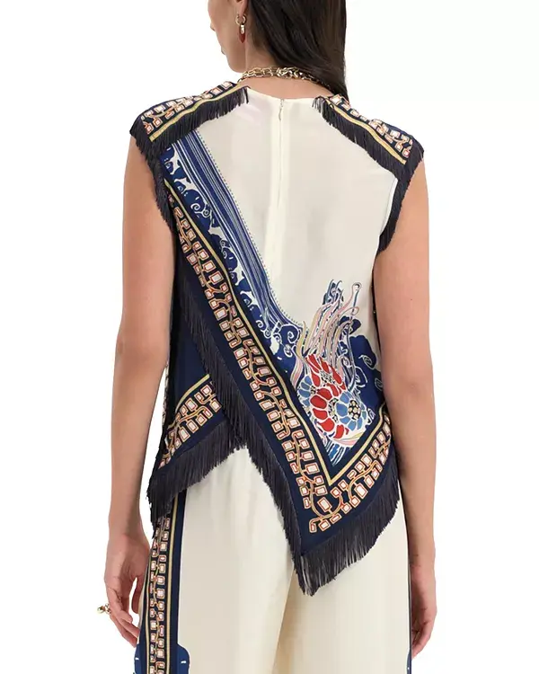 Потрясающий образец исключительного мастерства, топ-шарф от La DoubleJ восхищает контрастным эффектом платка и бахромой.