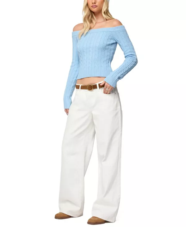 Свитер крупной вязки Taniza с открытыми плечами Edikted, синий
