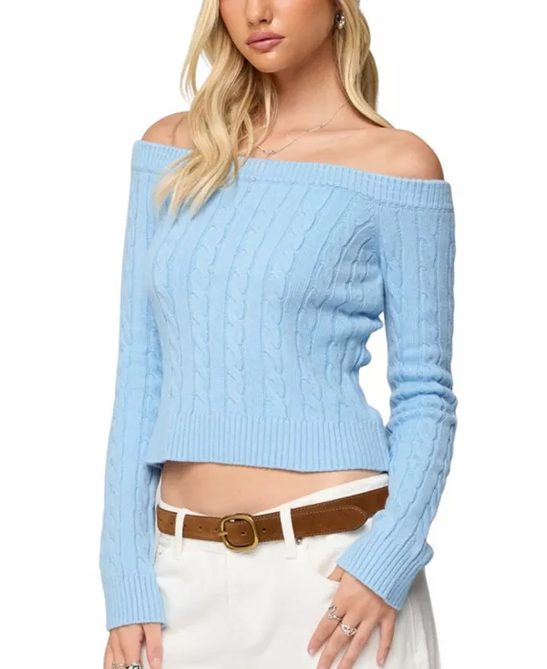 Свитер крупной вязки Taniza с открытыми плечами Edikted, синий 8 154₽