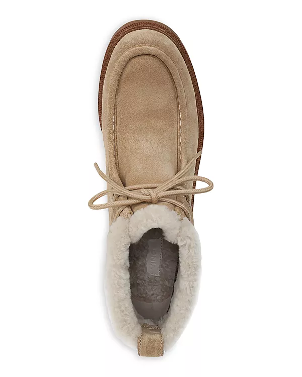 Изысканная интерпретация классической утилитарной модели, ботинки Vince Sierra на рифленой подошве изготовлены из мягкой замши с подкладкой из плюшевой овчины.