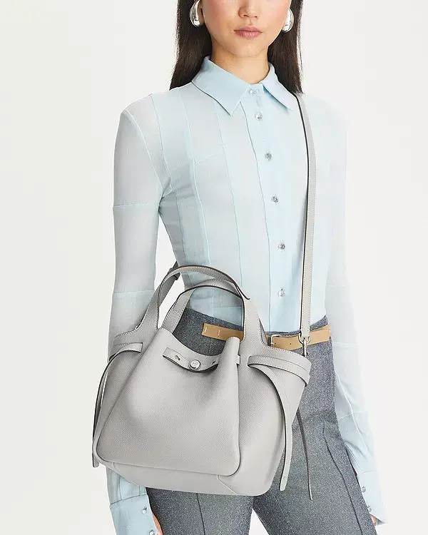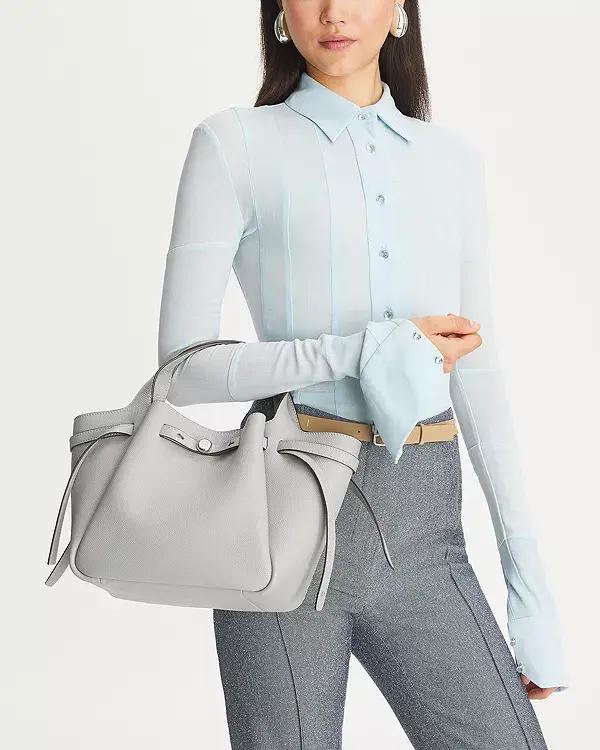 Бренд: Tory Burch Цвет: серый Идеальная сумка на каждый день, Tory Burch Small Romy Tote, выполнена из мягкой зернистой кожи с плавно собранным силуэтом. Легкая, с просторным внутренним отделением, организованным с помощью глубокого кармана, в которое поместятся телефон, кошелек, бутылка воды и планшет. Украшена тонким ремешком и новым логотипом на пуговице. Носите ее с верхней ручкой или через плечо.