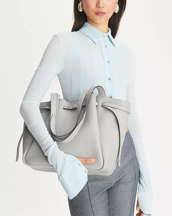 Бренд: Tory Burch Цвет: серый Сумка-тоут Romy выполнена из мягкой зернистой кожи с плавно собранным силуэтом. Легкая, с просторным внутренним отделением, организованным с помощью глубокого кармана на молнии, она вмещает телефон, кошелек, бутылку с водой, блокнот и ноутбук. Украшена тонким ремешком и новым логотипом на пуговице. Сумка, которую можно использовать и как ручную кладь в путешествиях, имеет широкий плечевой ремень для комфорта.