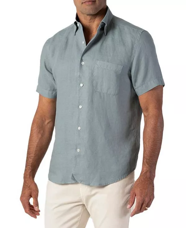 Льняная рубашка с коротким рукавом Morgan Robert Talbott, серый