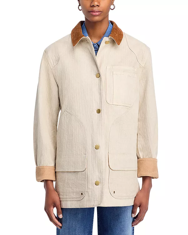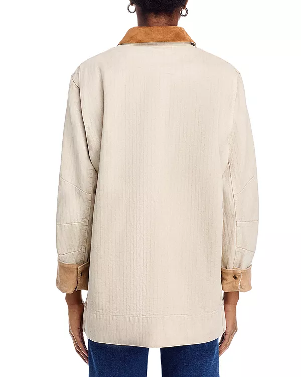 Особенности: Контрастный классический воротник Длинные рукава, контрастные манжеты Застежка на пуговицы спереди Два передних кармана для мелочей, один накладной карман на левой стороне груди На подкладке Импортный товар