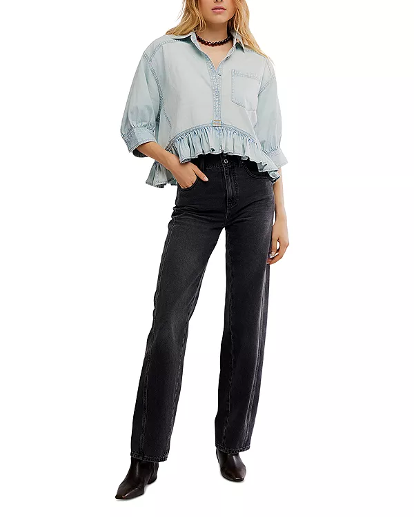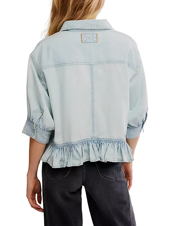 Джинсовая рубашка Bailey с оборками Free People, синий