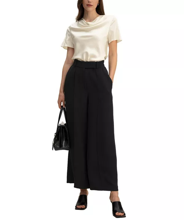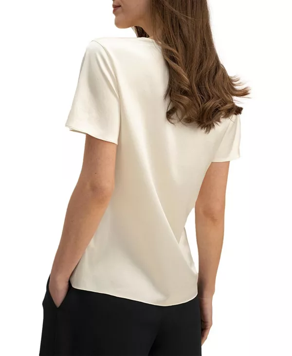 Добейтесь элегантности с легкостью! Каждая складка футболки с воротником-хомутом подчеркивает сияние и блеск шелкового шармеза. Эта футболка отлично смотрится в сочетании с шортами или широкими брюками для создания повседневного образа, или с юбками для более женственного и изящного наряда.