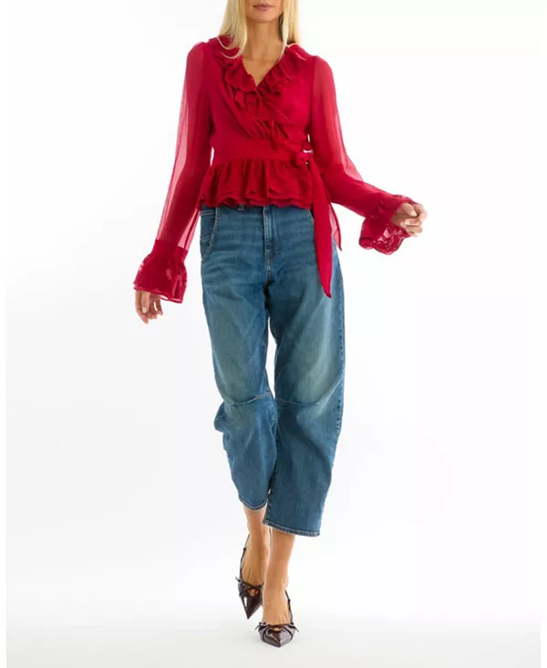 Романтическая блузка Poet, изготовленная из 100% органического шелкового жатого шифона, отличается легкой, струящейся драпировкой. Дизайн с оборками на вырезе, расклешенными манжетами и регулируемым запахом спереди создает силуэт в винтажном стиле, отличающийся утонченной элегантностью и очарованием.
