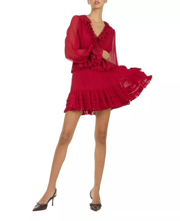 Романтическая юбка Nilou, изготовленная из 100% органического шелкового шифона, отличается легкой, воздушной драпировкой и изящным движением. Украшенная каскадными оборками и струящимся силуэтом, эта мини-юбка в винтажном стиле воплощает игривое, но в то же время утонченное очарование.