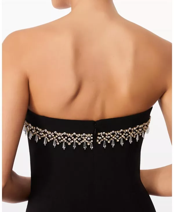 Бренд: Jenny Packham Цвет: черный Элегантное и современное, это черное платье без бретелей - образец изысканности вечернего наряда. Скроенный лиф точно повторяет контуры тела, визуально удлиняя силуэт и позволяя ткани изящно струиться. Нежная кристальная отделка подчеркивает вырез, придавая ему легкое мерцание. Идеальный выбор для вечера сдержанного гламура.