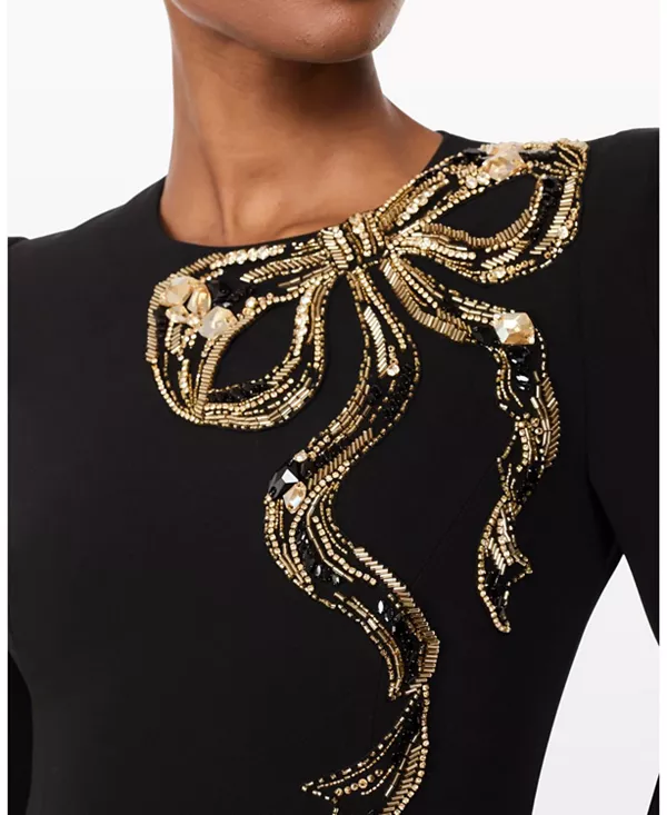 Бренд: Jenny Packham Цвет: черный Это коктейльное платье сочетает в себе вневременную элегантность и выразительные детали. Скульптурный силуэт дополнен мягко расклешенными рукавами и декоративным бантом на плече, который притягивает взгляд. Сдержанное, но эффектное, это изысканный выбор для вечерних приемов, официальных ужинов или торжественных мероприятий.