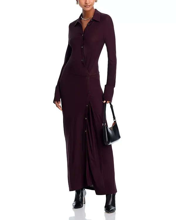 Платье-Рубашка макси с витыми складками Helmut Lang, коричневый 47 128₽